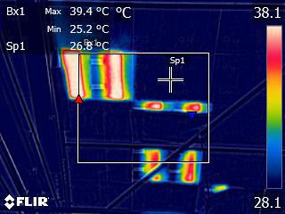 現調結果、この素材は当社で取り扱い外の素材でしたので別途専門業者が施工することになりそうですが、丁度手持ちの赤外線カメラを持っていたので簡単に撮影してみました。